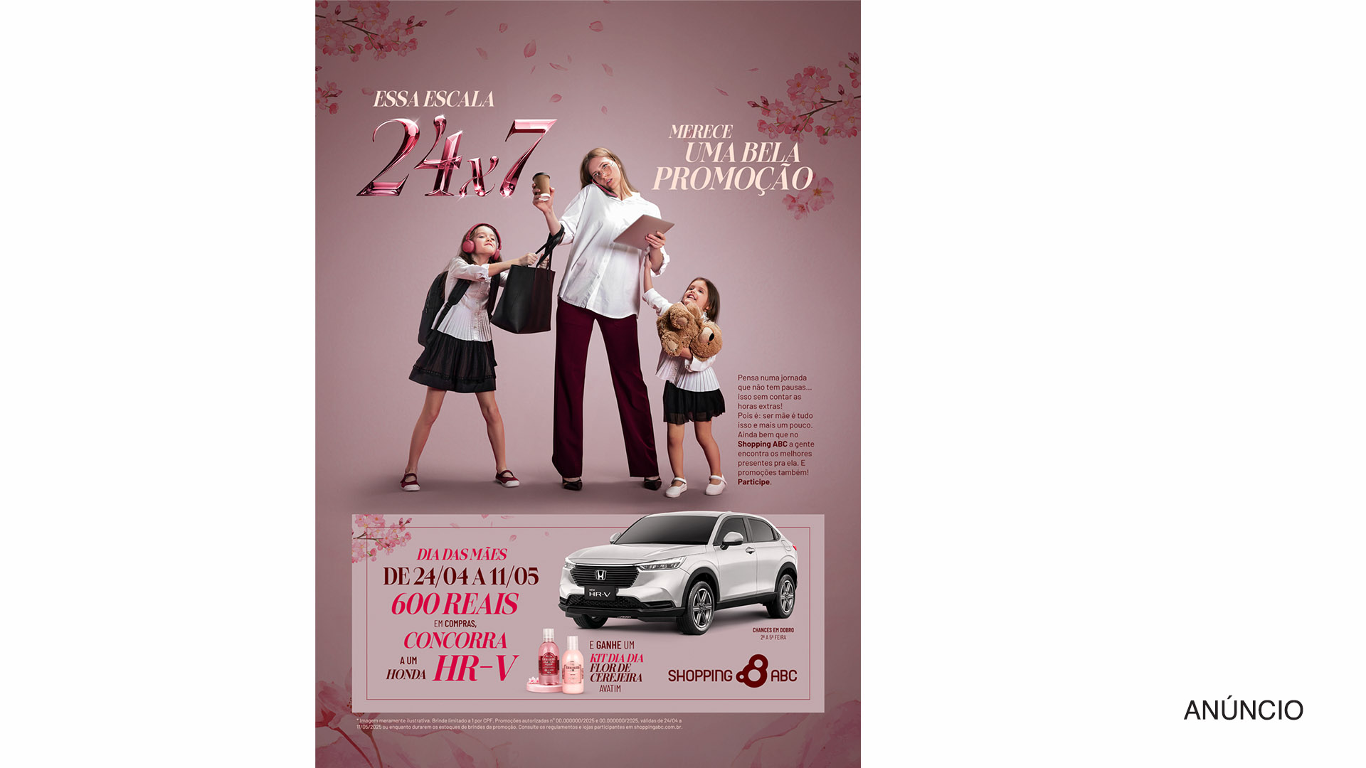 Esse cenário e seus dados serviram de base para a campanha “Essa escala 24 x 7 merece uma bela promoção”, um conceito que mostra de uma forma leve e descontraída a intensa jornada de cada mãe, que se desdobra para estar presente o tempo todo na vida dos filhos, sem abrir mão de todos os outros compromissos da vida profissional e pessoal. Além disso, a sacada do título ajuda diretamente a chamar atenção à promo, que distribuiu kits Avatim e sorteou um Honda HR-V para os participantes.
